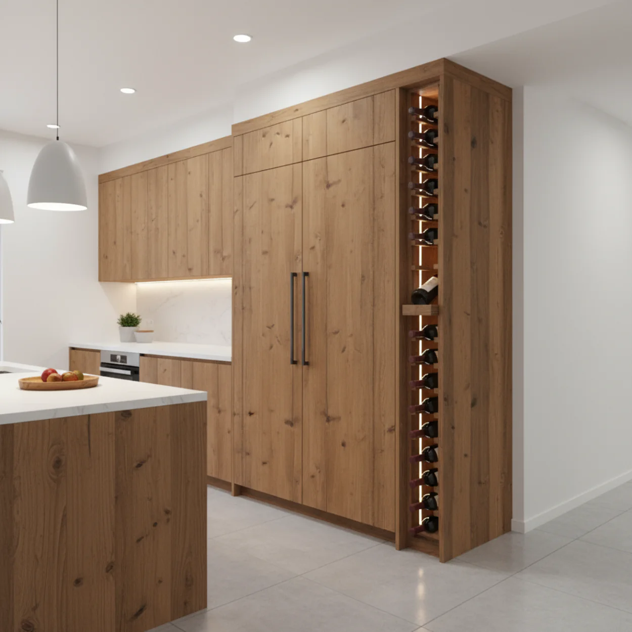 Elevate your wine collection with our meticulously designed 1 Column - 19 Bottle 6.5ft Wine Rack with Display, crafted to seamlessly blend functionality with elegance. Featuring a display row for showcasing wine labels and including both Base Rack and Upper Rack components, it's the ideal choice for stylishly organizing and displaying your prized wine collection. Discover a sophisticated storage solution that enhances both home décor and wine appreciation. As your wine collection grows, so can your storage. Each kit securely holds up to 19 champagne size 750ml bottles, ensuring your wines are stored safely and efficiently. Image shows Crown Molding & Toe Kick (sold separately).